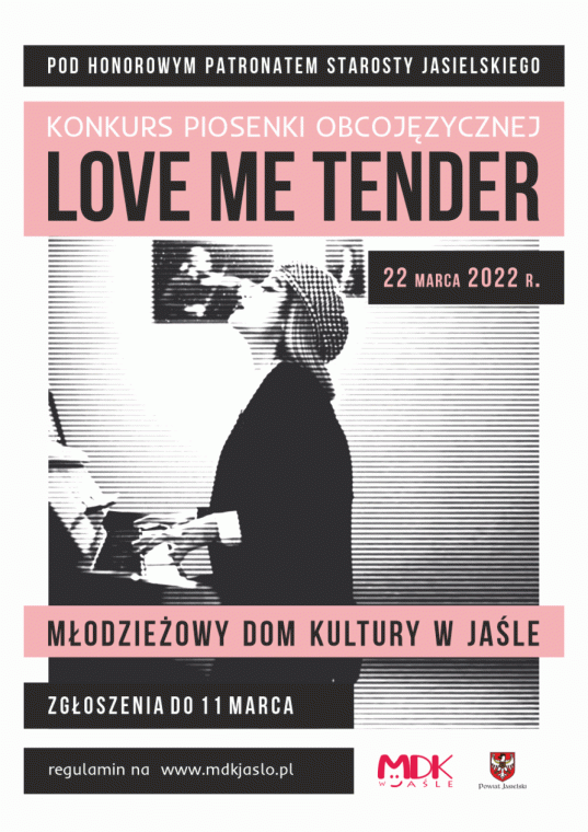 Organizatorem XXXIII Konkursu Piosenki Obcojęzycznej Love me tender był Młodzieżowy Dom Kultury w Jaśle. Wydarzenie zostało objęte honorowym patronatem przez Starostę Jasielskiego, Pana Adama Pawlusia.