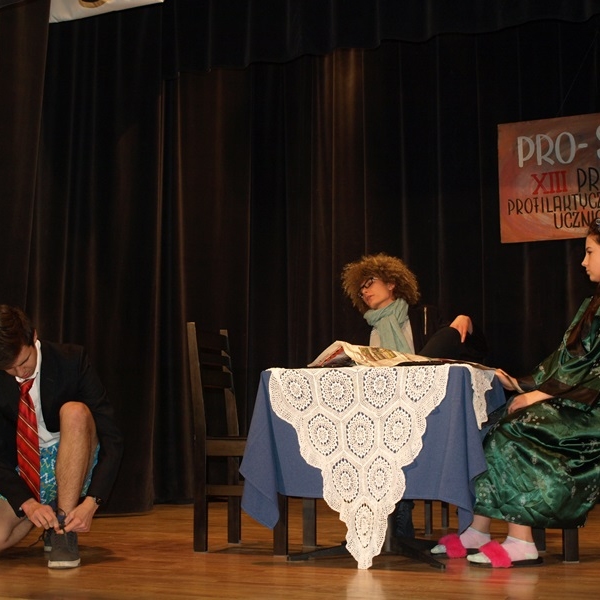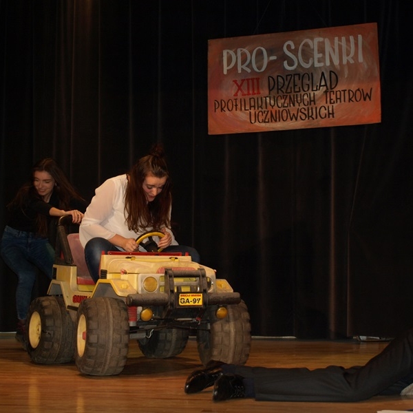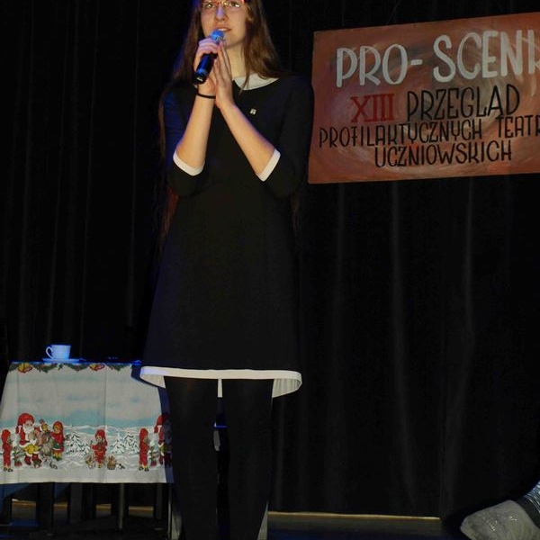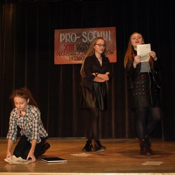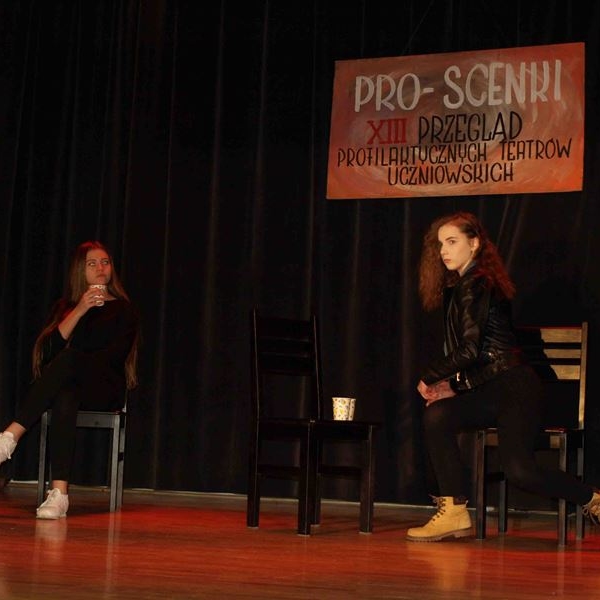 XIII Przegląd Profilaktycznych Teatrów Uczniowskich Gimnazjów i Szkół Ponadgimnazjalnych z Jasła i Powiatu Jasielskiego PRO SCENKI odbył się 28 listopada 2017 r. Na deskach sceny MDK zaprezentowało się 5 zespołów, które w swoich spektaklach poruszały różnorodną tematykę dotyczącą problemów nastolatków i zagrożeń, wynikających z dokonywania złych życiowych wyborów.