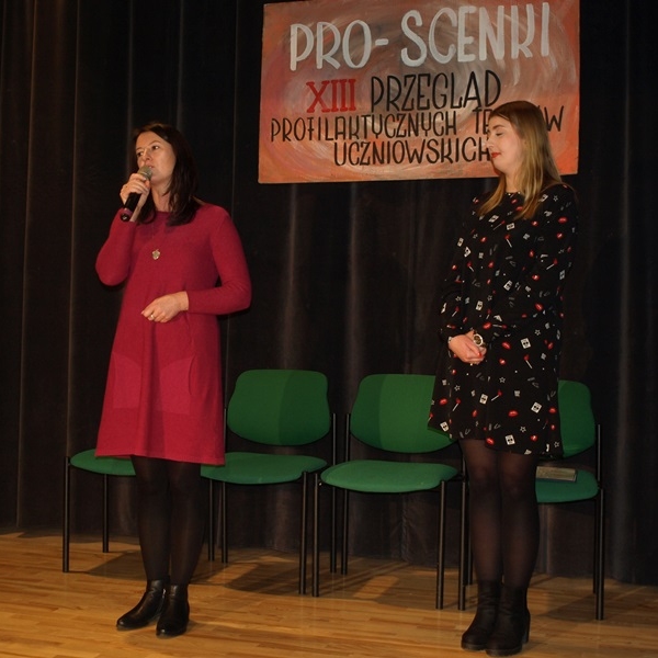 Na zakończenie PRO SCENEK przewodnicząca jury Karolina Dymska wraz z dyrektor MDK Grażyną Leńczuk wręczyły nagrody zespołom teatralnym. I miejsce na XIII Przeglądzie Profilaktycznych Teatrów Uczniowskich zajął Teatr Szkolny Zielona Kurtyna z Publicznej Szkoły Podstawowej w Bieździedzy. Wyróżnienie z kolei zdobył zespół Jaskółczy Niepokój z II Liceum Ogólnokształcącego w Jaśle za spektakl „Dziewczynka z zapałkami”. Wręczono także podziękowania opiekunom grup: pani Bożenie Krzyżak, siostrze Karinie Piotrowskiej, pani Małgorzacie Czernickiej oraz pani Agacie Ochałek – Skałbie.