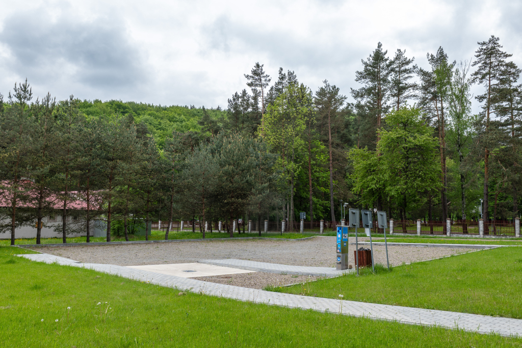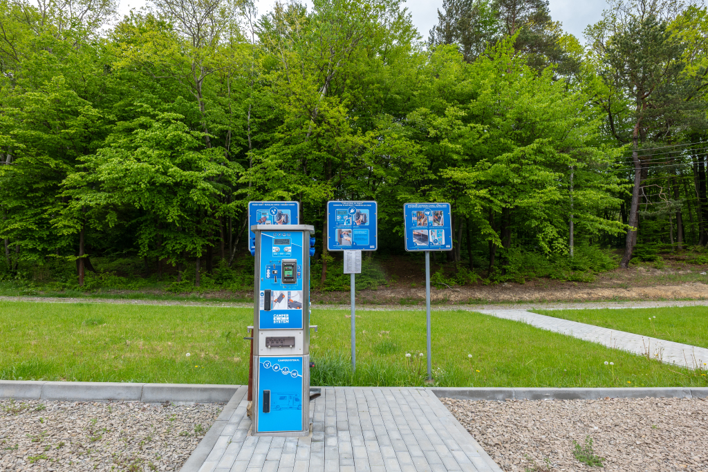Parking został zaprojektowany z myślą o komforcie użytkowników kamperów i przyczep kempingowych. Na jego terenie znajdują się wyznaczone stanowiska postojowe oraz kolumna serwisowa umożliwiająca pobór wody, energii elektrycznej i zrzut ścieków. Do dyspozycji gości jest także zaplecze sanitarne z łazienkami i toaletami, a także przestrzeń pomocnicza do przygotowywania posiłków.